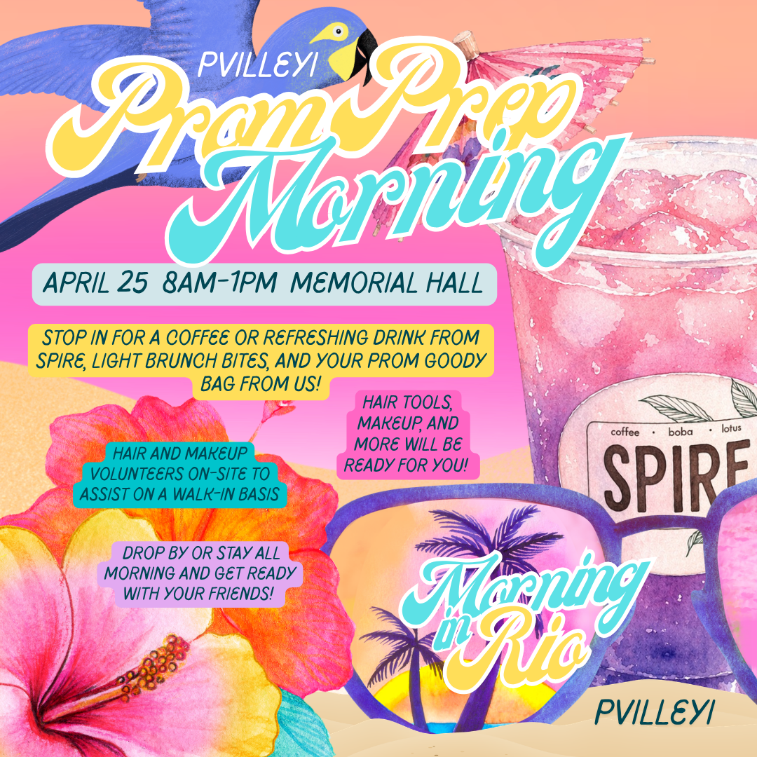 Are you a high school girl attending Pleasantville’s “Night in Rio” 2026 Prom? Then you’re invited to PvilleYI’s FREE Morning in Rio Prom Prep Morning! From 8am-1pm stop by the Memorial Hall. We’ll be there with coffee and refreshing drinks from Spire Drink Co., light brunch bites, and a prom goody gift bag just for you! Stop and go or stay as long as you’d like. You can even get ready for Prom with your friends at the Memorial Hall! We’ll have plenty of supplies and tools you can use at your own convenience, or we will have talented volunteers on hand to help you curl your hair or get that eye makeup just right. If you want a more styled hair style, we’ll have a volunteer or two on hand to help you on a first come first serve basis, but we’ll make time for you!